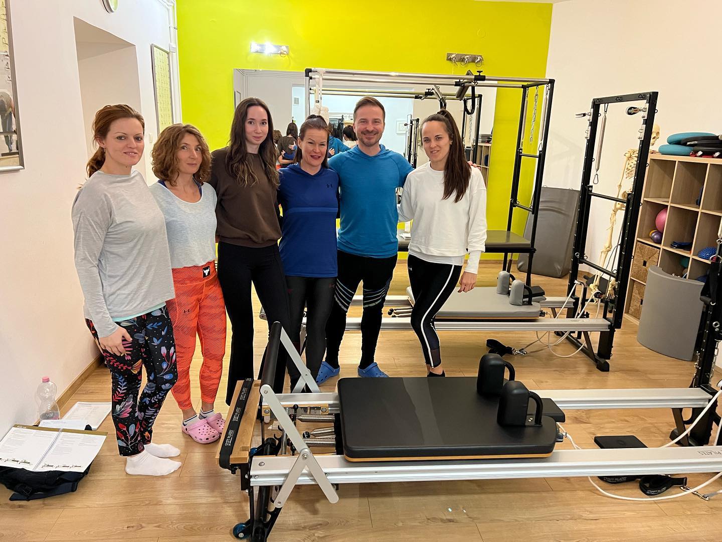 Merrithew Lead Instructor Trainer Krisztian Melykuti teaches reformer course in Pilates Plus Studio.